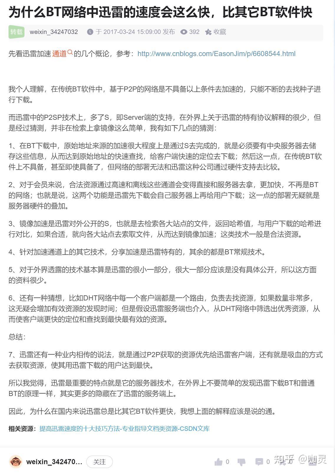 至于原因,因为迅雷的技术也未对外公开, 所以我也不百分百保证是因为什么。