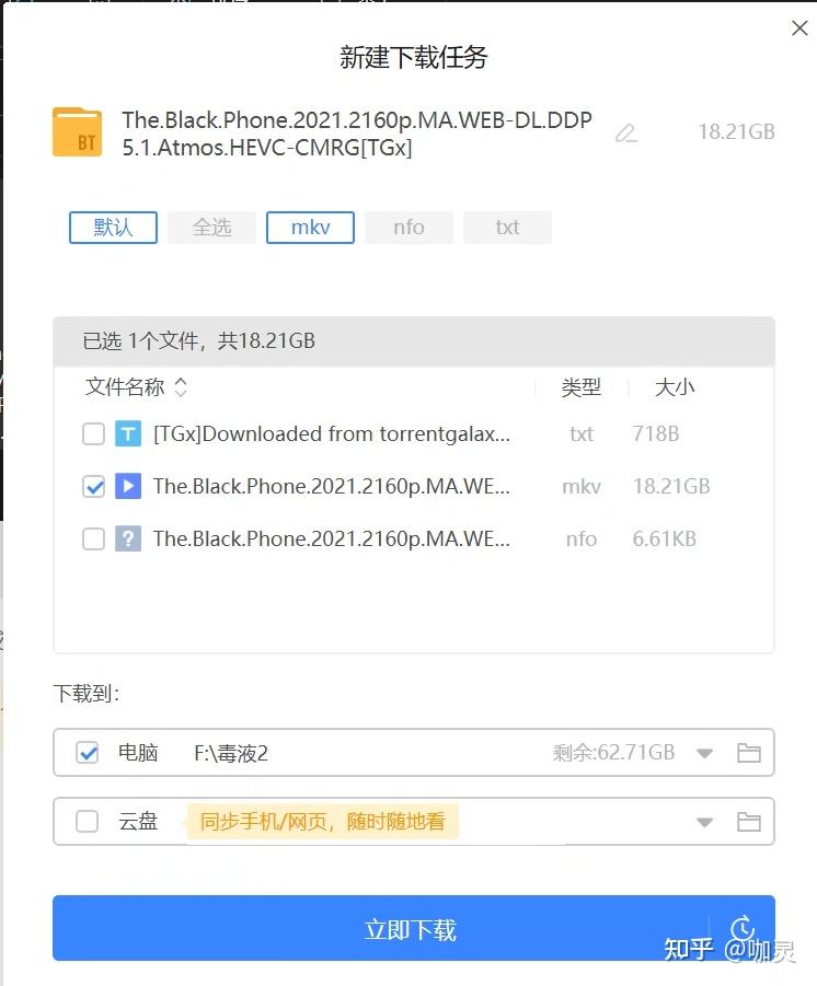 可以看到这部18.21GB的电影就在这里, 然后我们在点击下载就可以拿到了