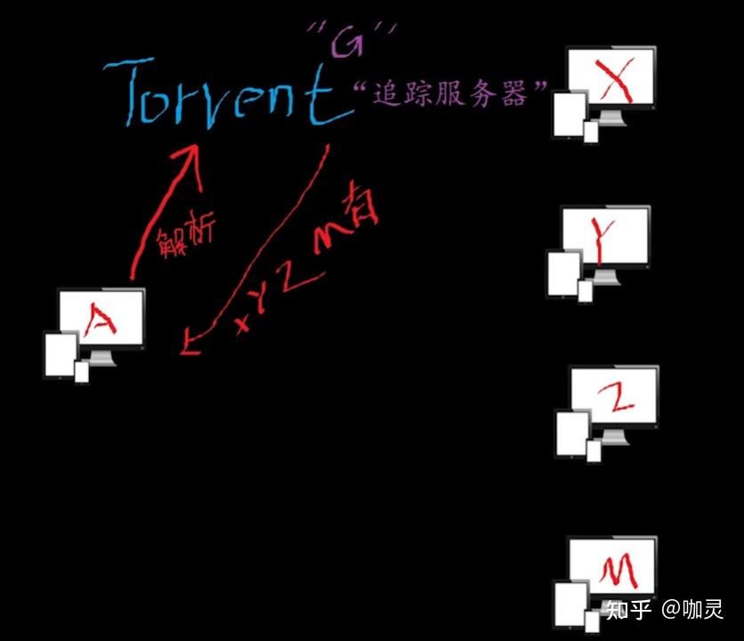 从种子上解析就可以查询到谁会有资源《雷神》,这个谁就相当于上面提到的用户G,它也叫做追踪服务器。
